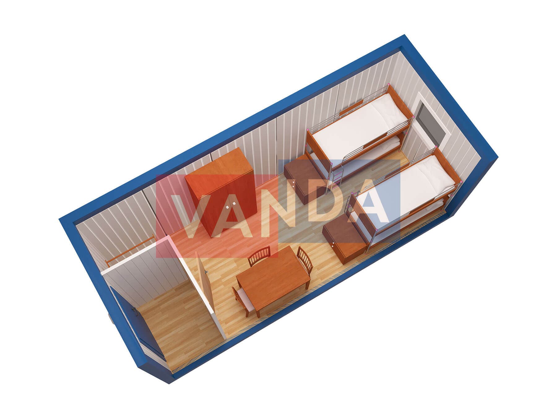 Металлическая бытовка с тамбуром 5,85 x 2,4 - Вагонка деревянная