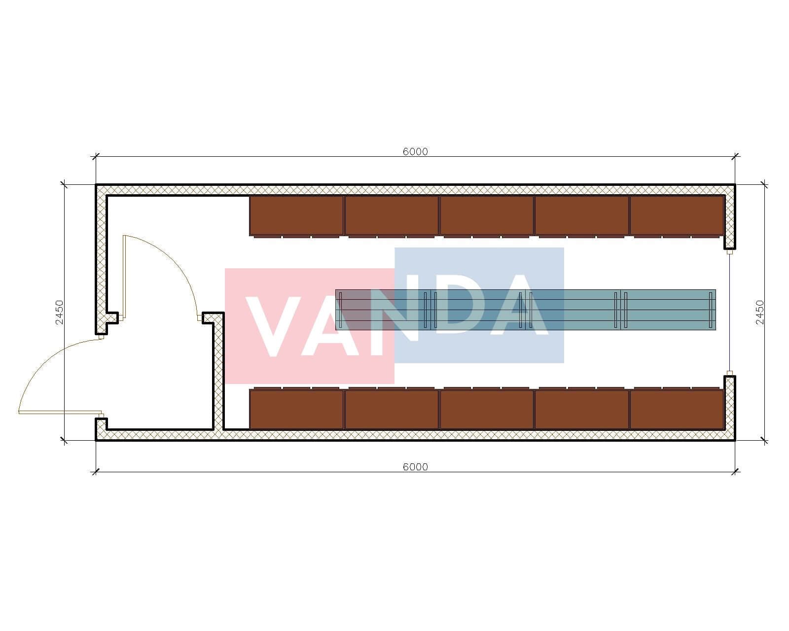 Металлическая бытовка распашонка 5,85 x 2,4 - Вагонка ПВХ